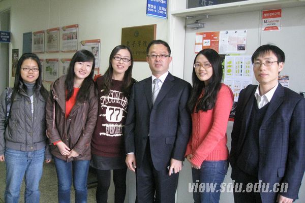 张永兵介绍了山东大学概况以及110周年校庆的情况,并对环黄海地区的人才联合培养问题作了阐述。以山东大学大力推动的学生海外经历为切入点,张永兵详细介绍了学校研究生教育中国际联合培养的形式和具体实施项目,提出研究生的国际联合培养对于提高研究生的培养水平、培养高素质的人才,以及促进研究生指导教师的科研合作具有非常重要的意义。作为环黄海地区的高校,在人才的联合培养方面,中、日、韩三国高校应该建立起一种机制,走高起点国际合作的路子,通过互派研究生的方式促进和建立起高校间的科研国际合作,为亚洲地区的繁荣发展带来源源不断的动力。在韩期间,山东大学代表团还会见了学校在大田的交换留学生和汉语志愿者,参观了与忠南大学合作建立的孔子学院。在孔子学院,张永兵详细询问了汉语志愿者在韩的工作和生活情况,勉励他们为传播汉语言文化特别是推动中华文化做出更大的努力。