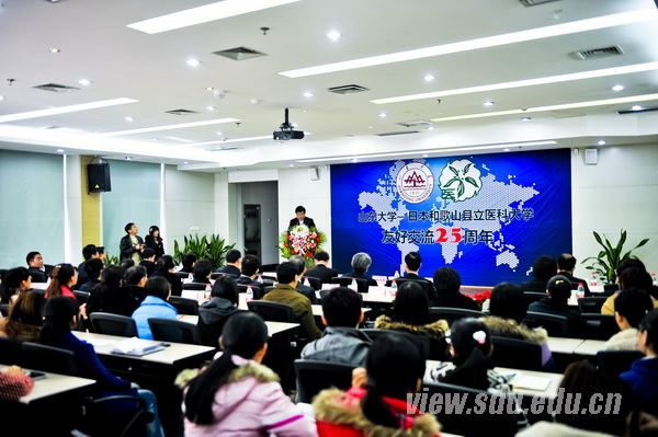 [本站讯]11月23至26日,日本和歌山县立医科大学校长板仓彻率代表团访问山东大学,参加山东大学-日本和歌山县立医科大学友好交流25周年庆祝活动。山东大学校长徐显明会见了代表团一行,副校长张运出席纪念山东大学-和歌山县立医科大学友好关系25周年庆祝仪式暨中日医学护理学术研讨会开幕式并致辞。