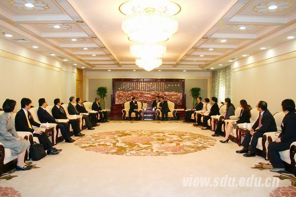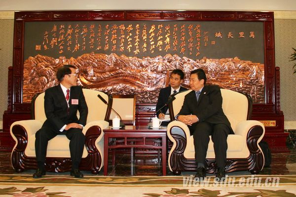 山东大学校长徐显明(右)会见板仓彻(左)一行