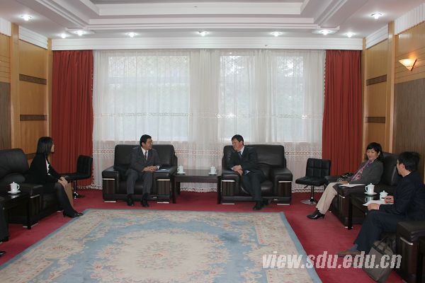 [本站讯]11月25日,日本驻青岛总领馆新任总领事平木场弘人一行3人访问山东大学,常务副校长王琪珑与平木场弘人一行进行了会谈。 王琪珑对平木场弘人一行的来访表示欢迎。他介绍了山东大学的概况和庆祝建校110周年的情况,并特别介绍了山东大学的办学目标以及构建山东大学系统和建设青岛校区的计划及进展情况,希望日本驻青岛总领馆能够继续关心和支持山东大学的发展,为山东大学与日本高校的合作发挥积极作用。平木场弘人对山东大学的接待表示感谢。他说,山东大学是中国历史悠久的综合性重点大学,与日本交流频繁,2012年是中日邦交正常化40周年,也是山东省与日本山口县友好交流30周年,希望以此为契机,进一步巩固和加强合作,共同推动中日文化和学术交流。双方还就山东大学与日本高校的学生和学者交流交换了意见。 会谈后,平木场弘人向王琪珑转交了日本驻华大使丹羽宇一郎先生个人向山东大学捐赠的日语图书一宗,外国语学院院长王俊菊参加会谈并共同接受了图书。访问期间,平木场弘人一行还参观了学校博物馆。