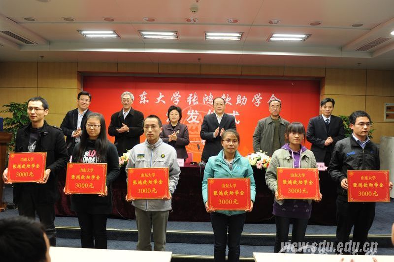 孙国良介绍了助学金捐资人张鸿钦先生的生平事迹,并对张鸿钦助学金的情况作了简要介绍。受助学生代表、经济学院2009级学生范义秀在发言中表达了对张鸿钦先生的崇高敬意和感谢,并代表全体受助学生郑重承诺:将发扬刻苦学习、勤俭节约的精神,努力学习科学文化知识,乐观向上,饮水思源,回报社会。仪式由山东大学合作发展部部长井海明主持。山东大学学生工作部有关负责人、全体受助学生参加了仪式。