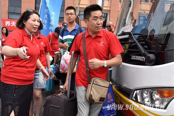 在迎新现场,一群身穿红色志愿者服装,来自山东大学青岛校友会的校友志愿者格外亮眼。他们来自青岛的各行各业,听到青岛校区要迎接第一届新生的消息后,纷纷放下手头的工作,出车的出车,出力的出力,主动来母校帮忙迎新。没有任务的时候,他们坐在休息区谈笑风生;去车站和飞机场接新生的大巴车甫一停在路边,眼尖的校友们马上互相招呼着:“快点儿快点儿,来活儿啦”,呼啦一下子,校友们都站起来向接站车走去。来到车前,校友们一边热情地招呼着新生和新生家长,一边接过他们手中的行李,引导着他们向各自的学院走去。服务完一批新生,校友们的兴奋劲儿还在持续,他们互相讨论着接到的新生情况,校友群中时不时爆发出一阵阵爽朗的笑声。激情模糊了岁月的痕迹,看着这群意气风发的校友,感觉他们好像又回到了挥斥方遒的大学时代。此种场景,让人温暖又感动。
