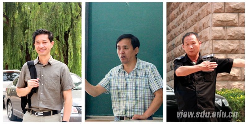在计算机学院门口,记者遇到了院长陈宝权教授(左图)。他背着单肩包,神清气爽地谈起了对学生的期待:“希望同学们能够以全新的心态和饱满的热情拥抱大学时光,抓住机会,不断尝试,享受未来。”他也希望自己可以带领更多学生走进国际先进化的行列。在教学楼五区,管理学院焦继文老师(中图)正在讲授《商务统计》。“这门课程的应用性很强”,他希望能够改进教学方法,提升教学水平,增强与同学们的课上互动,激发大家的兴趣和热情。软件园校区主教学楼旁的十字路口是安保人员魏学军(右图)的一处工作地点。每当有人求助,他都首先向对方敬一个礼。提到校园安全,魏学军说:“大学生思想单纯没有社会经验,对危险要提高警惕,谨慎防范,也要认真学习,珍惜好时光。”