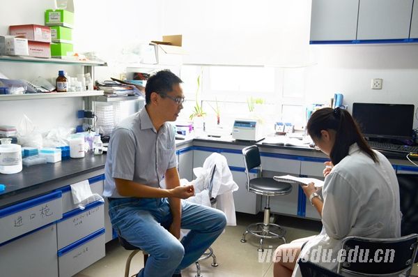 当被问到新学期展望,正在整理实验器材的医学院2015级病理学研究生潘威(左图)笑着说:“今天是开学第一天?!我们整个假期都在实验室,每天都是实验日,早就投入新学期科研实验了。”基础医学院免疫学研究生导师赵伟(右图左一)一早就来到实验室,与学生沟通本学期课题重点。他希望学生们在新学期能立足专业、刻苦钻研,增加学习、研究的深度,扎扎实实打基础,脚踏实地做学问。