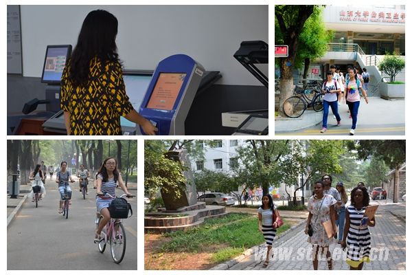 正在指导学生做毕业补充实验的材料学院高学平老师(左图左二)满头大汗,因为他刚从另一个实验室赶过来。新学期,他希望本科生们能早早适应、融入大学生活,研究生们尽快找到做科研的方法。周丽蓉(右图右二)是机械学院博三学生,开学第一天她空课,便到实验室准备去美国普渡大学的资料。她希望自己尽快熟悉环境,学到更为先进的知识,跟导师多做些实验。
