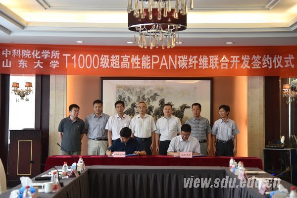 [本站讯]7月26日,山东大学与中国科学院化学所签署了T1000级超高性能PAN碳纤维联合开发协议。山东大学校长张荣、中科院化学所党委书记王笃金出席签约仪式。