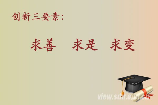 那么,何谓创新?初听到校长讲话中提到“创新”,现场毕业生们都不自觉地将钦佩的目光投向了主席台上科研成果卓著的学者们,他们是当之无愧的科研创新的典范。但是,通过继续深入聆听校长对“创新”的理解,大家慢慢觉得,“创新”不再高不可攀。张荣说,创新可以分为很多层次,也体现为很多形式,创造新产品是一种创新,发明新技术是一种创新,创建新制度也是一种创新,甚至用新的视角观察事物、用新的方法解决问题等等,也都是某种意义上的创新。只要用心观察、深入思考、不断实践,每个人都有创新的可能,每个人都可释放创新的潜能。在深入阐述如何创新时,张荣提出了“创新”三要素:求善、求是、求变。其中,“求善”指引方向,“求是”提供动力,“求变”开辟路径。