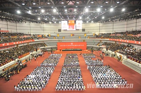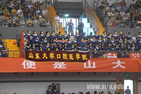 [本站讯]6月23、24日,山大2016届毕业生毕业典礼在体育馆隆重举行。天公作美,23日的雨缠缠绵绵,既扫除了连日来的暑热,又像是在深情挽留即将离别的毕业生。上午八点,体育馆内已热闹非凡,现场毕业生们别出心裁地将手机的手电筒功能打开,白光点点,轻轻摇曳,顿时汇成一片灿烂的白日星空。现场播放的视频将毕业生们的情绪拉到了对校园生活的追忆中,入校、军训、听讲座、参加创新比赛……那些难忘的青葱岁月,那些日日夜夜的拼搏和奋斗,轻轻一碰,就有种泪流满面的冲动。
