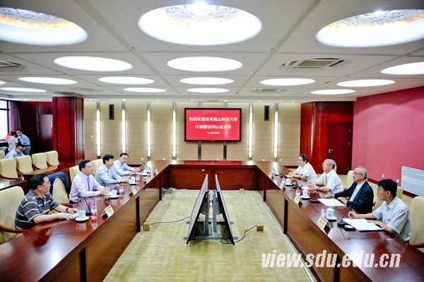 会谈中,张荣介绍了山东大学的基本情况以及同台湾地区文教机构开展科技、人文合作所取得的成绩。张荣表示,两岸高校在办学理念、措施等诸多方面有相互借鉴之处,希望未来两校在优势学科领域寻找合作契机。李士崇谈到,崑山科技大学的发展受益于与大陆多所高校的合作,希望此次能与山东大学也建立起密切的交流联系。苏炎坤介绍了崑山科技大学的办学特色,强调该校在产教融合、校企合作方面颇有建树,在创意媒体、环境工程等专业领域具有一定的学科优势,期待同山东大学以具体项目合作为突破,实现两校实质性合作。经过交流,双方在以学生交流为突破口带动相关专业合作上达成共识,并计划尽早落到实处。山东大学港澳台事务办公室、齐鲁医院、晶体材料研究所有关负责人参加会见。
