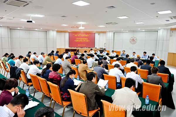 [本站讯]5月12日下午,山东大学召开党委中心组(扩大)会议,传达学习《中共中央组织部关于学习贯彻习近平总书记重要批示精神加强党委(党组)领导班子建设的通知》,重温毛泽东同志《党委会的工作方法》。校党委书记李守信主持会议并讲话,党委常务副书记李建军领学了《党委会的工作方法》。
