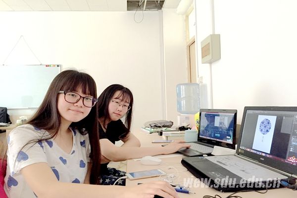 来自软件学院数字媒体技术专业的毛瑜琦(左)和郑雅文(右)正在实验室努力着,她们所在的数媒实验室参加了山东省大学生纪录片大赛,目前正紧张地准备作品。从前期的素材采集到后期的剪辑处理,利用这个假期的时间,她们进行着纪录片最后的加工和完善。当谈起梦想,郑雅文有些羞涩,笑着说,短期的梦想是希望作品在比赛中拿到优异的成绩,而长期的梦想,是“期待数媒实验室能得到更好的发展”。
