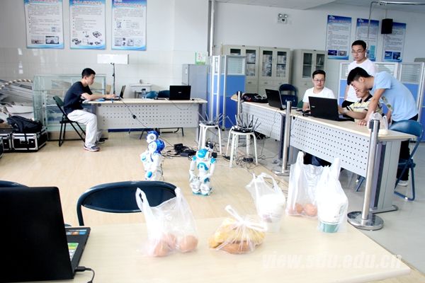 上午十点半左右,记者在兴隆山校区工程训练中心四楼见到了SDU-NAO创客团队。进入实验室,首先映入眼帘的是机器人、程序员以及他们还没来得及吃的早餐。在这个团队里,机器人与人一样不可或缺。所有荣誉的获得,都离不开团队成员对科学以及创新的信仰。