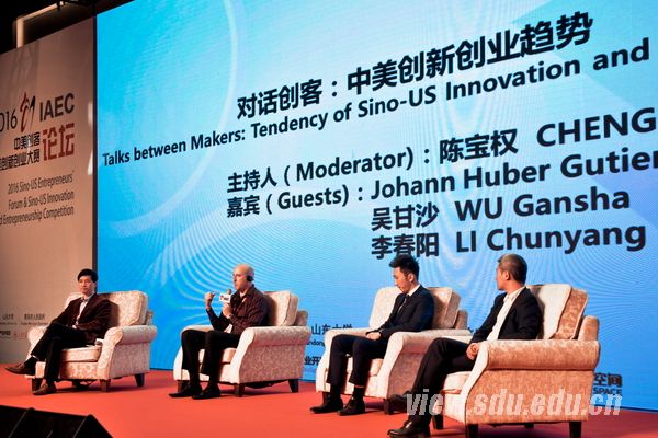 在“对话创客:中美创新创业趋势”论坛上,美国硅谷TechReactor公司首席创新官 Johann H. Gutierrez,驭势科技创始人、前英特尔中国研究院院长吴甘沙,虫洞翻翻创始人李春阳作为嘉宾,从政策、文化、创业理念等方面,结合自己的个人经历,讨论了中美两国创业环境的不同。