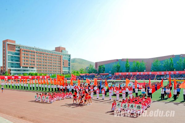 伴着激昂的《运动员进行曲》,32个单位的运动员代表队方阵依次入场。各个学院都匠心独运,将自己的特色展现得淋漓尽致。历史学院代表队身着民国服装,口诵《少年中国说》,为赛场增添几分历史的肃穆。身着学士服的数学学院学子将热爱的数学融入表演,用身体比出“ex”、“圆”等函数图像,并配以“一顾倾柯西,再顾倾科比”的嘹亮口号。控制学院代表队将编程时的严谨带入表演中,一举一动都严卡节奏的“机器人舞”体现着机械之美。软件学院为我们讲述了一个虚拟的由学院自主研发的“BetaGo”机器人打败谷歌“AlphaGo”的故事,完美地诠释了“雄鹰试翼,风尘翕张;软件少年,毕露锋芒”。管理学院、艺术学院、法学院、政管学院等学院代表队带来了精彩的舞蹈,“力”与“柔”的完美结合赢得阵阵掌声。最后出场的普通生田径队和机器人战队代表队向大家展示了高超的平衡车操控技巧,半米高的上坡和无后视倒车项目获得全场惊叹……绚丽的服装、精彩的表演、嘹亮的口号将全场气氛点燃,把开幕式推向高潮。看台上的观众们激动万分,掌声、欢呼声此起彼伏,四月的兴隆山热闹非凡。