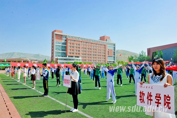 随后,各学院参加了学校统一组织的第八套广播操表演比赛。各色的队服将绿茵场装点得分外美丽,青春、活力在同学们的举手投足间展露无遗。伴着徐徐清风,队员们朝气蓬勃、英姿飒爽,用舒展的动作,整齐的步伐,彰显着山大人积极、自信、昂扬的精神风貌。表演过程中,观众席上,师生们静心瞩目,频频点头,不断为他们精彩的表演喝彩。