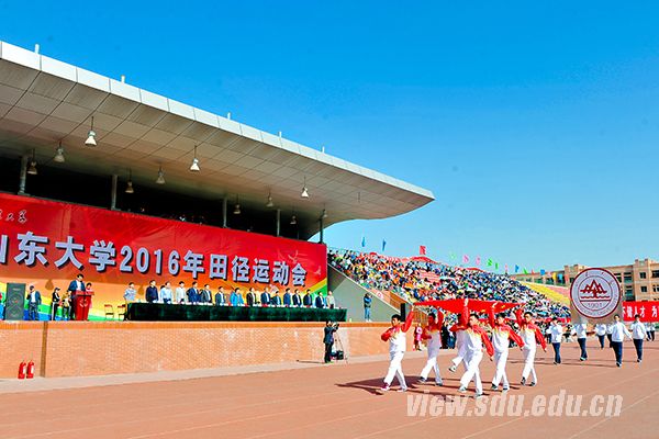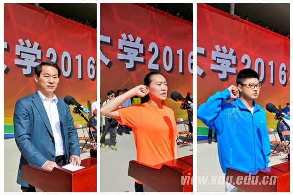 [本站讯]4月22日上午,山东大学2016年田径运动会开幕式在兴隆山校区体育场举行。山东大学党委书记李守信出席活动并宣布山东大学2016年田径运动会开幕。校党委副书记仝兴华致开幕辞;总会计师曹升元、副校长胡金焱等出席开幕式。