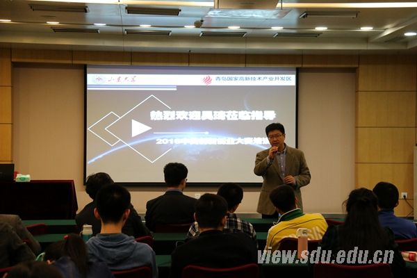 [本站讯] 3月31日,2016中美创新创业大赛培训会在中心校区举行。山东大学78级校友吴琦参加活动。