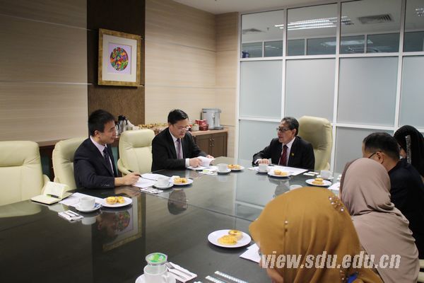 会谈中,Mohd Jalaludin介绍了马来亚大学的历史、学科特色、科研和学术声誉,并希望与山东大学在学生交流、教师互派和科研合作等方面进行交流合作。张荣结合山东省的地理、经济、文化,全面介绍了山东大学的历史沿革、学科特色、国际交流、学生培养,并与马来亚大学理学院、计算机学院、语言学院、经济和管理学院、国际部等相关负责人就师生交流、学术资源共享、合作研究等项目进行了深入探讨。双方就两校发挥各自优势,积极开展交流,尽快将合作交流项目付诸行动达成一致。