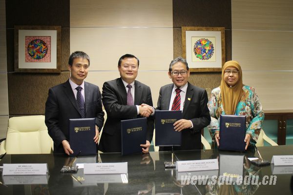 会谈后举行了签字仪式,张荣与Mohd Amin Jalaludin签署了《山东大学-马来亚大学学术合作备忘录》和《山东大学-马来亚大学学生交换协议》。根据协议,两校将开展学生互换、职员互访、合作研究、合作出版、学术资源交流和共享等方面的合作。