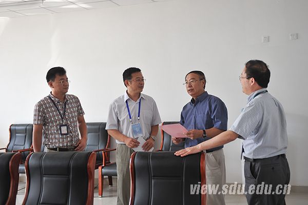 李守信首先来到振声苑南、北楼,看望了在此办公的青岛校区党工委、综合办、青岛校区建设指挥部、启动运行办公室以及延伸管理的各工作组工作人员,对大家的辛苦工作、默默奉献表示感谢,希望大家立足本职岗位,为青岛校区的顺利启用和即将开始的教学科研等工作做好细致周到的服务,让教师满意、学生满意、家长满意。