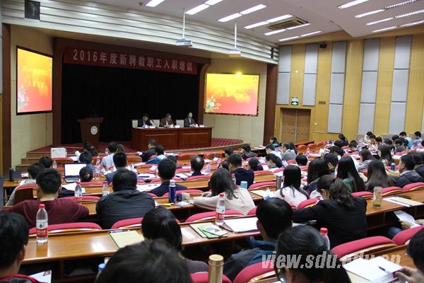 [本站讯]近日,山东大学开展了2016年度新聘教职工入职培训活动,150余位新聘教职工参加培训。校党委副书记仝兴华、副校长胡金焱出席活动并作专题报告。