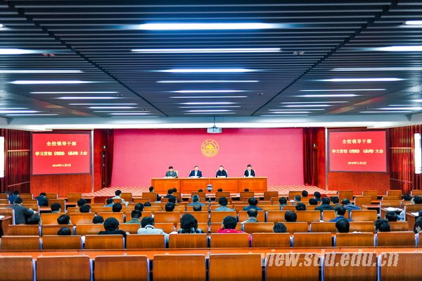 [本站讯]11月4日上午,山东大学召开全校领导干部学习贯彻《关于新形势下党内政治生活的若干准则》和《中国共产党党内监督条例》大会, 专题学习《关于新形势下党内政治生活的若干准则》(以下简称“《准则》”)和《中国共产党党内监督条例》(“以下简称《条例》”)两个文件,部署学校下一步贯彻落实措施。校党委书记李守信出席会议并讲话,校长张荣主持会议并讲话。