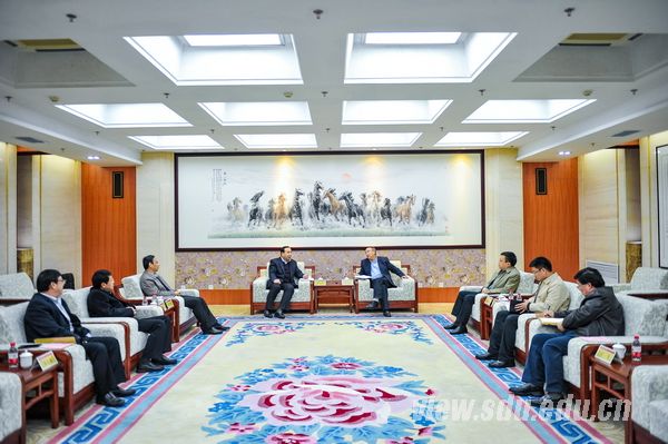 [本站讯]11月7日下午,山东大学党委书记李守信在中心校区会见禹城市委书记张安民、市长荣红智一行。双方就推进校地合作事宜进行了座谈交流。