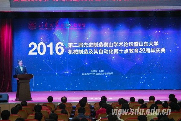 [本站讯]11月19日,山东大学机械工程学院在千佛山校区举办第二届先进制造泰山学术论坛暨山东大学机械制造及其自动化博士点教育30周年庆典。山东大学常务副校长王琪珑出席庆典并致辞。