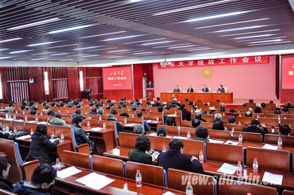 [本站讯]12月13日上午,山东大学统战工作会议在中心校区召开。会议总结了学校统战工作的历史和成绩,研究部署了统一战线工作。校党委书记李守信、校长张荣出席会议并讲话,校党委常务副书记李建军主持会议,校党委副书记陈向阳作统战工作报告。