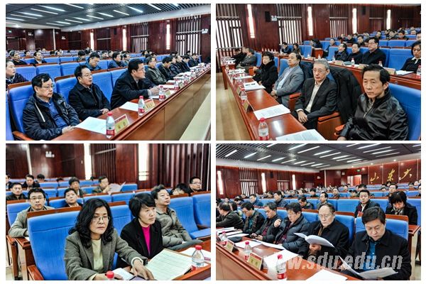 常务副校长王琪珑,校党委副书记仝兴华,副校长韩圣浩,总会计师曹升元,副校长胡金焱,校务委员会秘书长尹作升,齐鲁医学部党工委书记侯俊平,齐鲁医院党委书记曹宪忠、院长李新钢,校长助理伍先华(挂职),全国政协委员、中央文史馆馆员、山东大学终身教授刘大钧,全国人大代表、山东省欧美同学会会长、山东省党外知识分子联谊会会长程林,全国政协委员解士杰等出席会议。各学院院长、党委书记、统战委员,科研机构、直属附属单位党政主要负责人,党政机关、群团组织主要负责人,齐鲁医学部部领导及内设处室主要负责人,齐鲁医院、第二医院分管统战工作的院领导和统战部部长,山东省人大代表、政协委员、政府参事、文史馆馆员,各民主党派、无党派知联会主要负责人,党外代表人士,少数民族联谊会负责人,侨联、台联小组负责人等200余人参加会议。大会在威海校区、青岛校区设视频分会场。