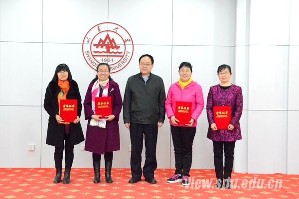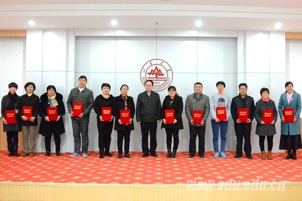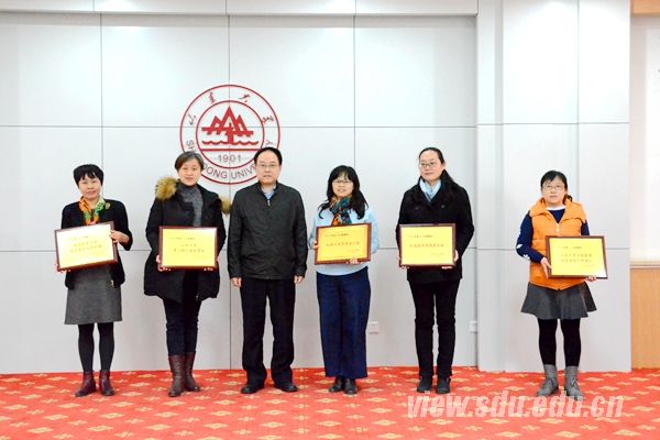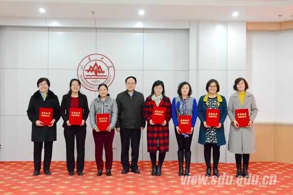 [本站讯]在第107个国际劳动妇女节到来之际,3月7日下午,山东大学在中心校区举行庆祝“三八”国际劳动妇女节暨表彰座谈会,对2016年度山东大学“三八红旗手”“三八红旗集体”“妇女工作先进个人”“最美家庭”进行表彰。校党委副书记、纪委书记陈向阳为获奖代表颁发证书并讲话。 陈向阳在致辞中代表学校党委向全校女职工、女同学以及广大妇女工作者致以节日的问候,向受到表彰的集体、个人和家庭表示祝贺,感谢她们为推动学校事业发展所作的奉献。他在致辞中回顾了2016年学校发展取得的成绩,表示其中包含了所有女职工、女同学以及妇女工作者们的贡献。他希望广大女同胞加强理论学习,坚定理想信念,紧密团结在以习近平同志为核心的党中央周围;要爱岗敬业,努力工作,为学校事业发展建功立业;要大力弘扬文明新风,在构建和谐社会中发挥独特作用。他要求,妇女组织要加强自身建设,更好地发挥桥梁纽带作用,团结带领广大妇女抢抓机遇、真抓实干、攻坚克难,奋力开创学校事业发展的新局面,以优异的成绩向党的十九大献礼。 校工会主席曲波主持会议。校妇委会主任兼工会副主席朱桂英就奖项评选的情况作了说明,并介绍了妇委会工作。校工会副主席、妇委会副主任鲍红宣读表彰决定。控制科学与工程学院马昕、人事部郭春晓、材料科学与工程学院王娟、数学学院马树萍、第二附属中学王春玲、晶体材料研究所陈秀芳、外国语学院高弟、历史文化学院王芬、能动学院雷丽等10人当选“三八红旗手”。口腔医院口腔颌面外科团队、外国语学院英语专业、机械工程学院办公室、第二幼儿园炊事班等5个单位当选“三八红旗集体”,研究生工作部程翠玉、能源与动力工程学院郝丽萍、土建与水利学院王艳玲、基础医学院周亚滨、材料科学与工程学院刘西华等5人当选“妇女工作先进个人”。艾量等34人所在的家庭当选“山东大学最美家庭”,其中艾量家庭还获得“山东省省级文明家庭”荣誉称号,徐春晓家庭还获得“山东高校最美家庭”荣誉称号。获奖代表艾量、徐春晓、王娟、李保杰、王艳玲作了典型发言。 校工会领导班子成员、校妇委会成员、各基层工会女工委员,获奖个人、集体和家庭代表等参加活动。
