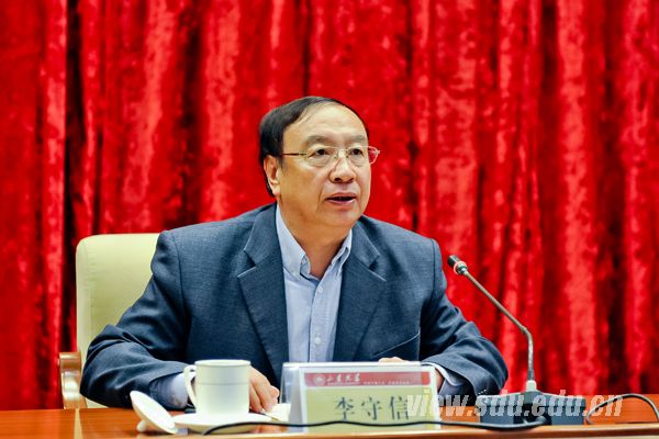 李守信传达了十八届中央纪委七次全会和2017年教育系统党风廉政建设工作视频会议对加强全面从严治党、推进党风廉政建设工作的新要求、新部署,突出强调新一年学校管党治党工作要重点抓好五个方面的任务:一是做好接受中央巡视的各项工作,将接受中央巡视作为深入推动学校全面从严治党的难得契机,自觉把思想和行动统一到中央巡视工作的部署和要求上来,全力支持和配合中央巡视工作顺利开展,认真抓好巡视组反馈意见的整改落实,推动学校事业迈上新台阶;二是推进学校全面从严治党向纵深发展,坚持治标不松劲,治本不松懈,持续强化“不敢腐”的震慑作用,不断完善“不能腐”的体制机制,努力筑牢“不想腐”的思想境界,不断以治标促进治本,深化标本兼治,推动从严治党走向严紧硬;三是推进《中国共产党廉洁自律准则》《中国共产党纪律处分条例》在学校落地生根,学校各级党组织和广大党员干部要以高度的政治自觉,把《准则》《条例》作为加强和规范党内政治生活,加强党内监督的根本遵循,把自己摆进去,自觉对照校正自己的思想、作风、行为,不折不扣执行《准则》《条例》;四是营造风清气正的学校政治生态,坚持明纪律、重监督、聚人心、树形象,不断净化学校政治生态,营造党员干部干事创业的良好氛围;五是做好选人用人工作,严格标准、健全制度、完善政策、规范程序,使选出来的干部组织放心、群众满意、干部服气,形成能者上、庸者下、劣者汰的选人用人导向。李守信表示,全面从严治党是重大政治责任,全校各级党组织要认真履行全面从严治党主体责任,切实把管党治党主体责任扛在肩上、抓在手中、落到实处;学校纪委肩负着监督执纪问责的重要职责,学校党委要加强领导,一如既往全力支持纪委开展工作,自觉接受纪委监督;纪检部门要高度重视加强自身建设,严格落实监督执纪工作规则,努力建设一支让党放心、师生信赖、忠诚干净担当的纪检监察队伍。
