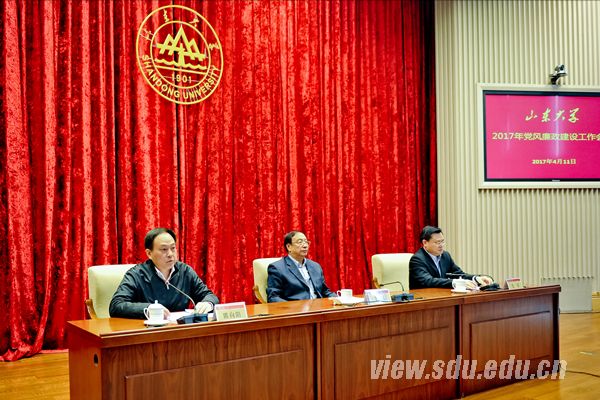 [本站讯]4月11日,山东大学2017年党风廉政建设工作会议在中心校区举行。校党委书记李守信出席会议并讲话,校长张荣主持会议,校党委副书记、纪委书记陈向阳作工作报告。