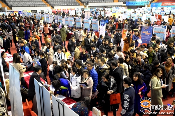 党的十九大报告明确指出:“就业是最大的民生。要坚持就业优先战略和积极就业政策,实现更高质量和更充分就业。”“提供全方位公共就业服务,促进高校毕业生等青年群体多渠道就业创业。”近年来,山东大学深入贯彻落实中央关于做好高校毕业生就业工作的一系列决策部署,牢固确立人才培养在学校工作中的中心地位,把学生就业工作摆在更加突出的位置,推动全校协同育人,使一流大学建设的成果更好地惠及青年学子成长成才,为社会培养更多高素质复合型人才和拔尖创新人才。学校坚持适应国家和社会发展需要,深化教育教学改革,不断提高人才培养质量;在就业工作中坚持“生涯教育全程化、实习实践平台化、校企合作立体化、就业服务精准化、跟踪服务持续化”理念,结合学科特点以及90后大学生的成长规律和就业发展诉求,完善指导服务体系,使就业指导服务贴需求、接地气、重普惠,同时密切关注经济转型升级态势,主动与各地党委政府和企事业单位的人才战略对接,积极组织学生参加就业实习实践活动,拓宽毕业生就业渠道,到校宣讲、组团招聘、定向选调的单位数量呈逐年上升趋势。自2017年9月以来,截至本次双选会前,进校开展2018届毕业生校园宣讲、招聘的用人单位已达1200余家(包括中国航天科技集团、苏州市人才服务中心等举办的14场组团招聘),“山东大学就业”微信公众平台用户达6.5万人。根据日前完成的2018届毕业生生源上报数据,山东大学2018年预计毕业12300人(本科生约6300人,研究生约6000人);目前毕业生签约进展与上年同期相当,就业工作有序推进为帮助学生精准求职、帮助用人单位高效招聘,山东大学努力建设安全优质的校招平台。学校成立了双选会工作领导小组,制定了严密的会务方案。11月17日,仝兴华主持召开专题会议,对双选会工作进行统筹协调和周密部署,特别强调了加强双选会场地条件保障。学生就业创业指导中心广泛邀请各地各行业用人单位参会并做好资质审核,启用新开发的“山东大学学生生涯伴随与就业服务系统”,既方便了用人单位报名,又便利了学生检索查询。公安处、学生就业创业指导中心等会同济南市公安局提前查看现场、排查隐患。各学院(研究生培养单位)认真了解每一名学生的求职状况,做好精准化指导,并鼓励其他年级学生通过双选会主动探索职业世界、科学规划职业生涯。在双选会现场,各学院(研究生培养单位)就业工作领导小组负责人、院党委分管学生工作副书记、毕业班辅导员等也前来与用人单位交流并指导学生求职;场馆各关键点上配备了专业的安保、消防力量和学生志愿者,提供安全保障和引导服务。山东大学党委办公室、校长办公室,党委宣传部,财务部,后勤保障部,公安处,校医院,体育学院,东吴物业等校内单位;以及济南市公安局、济南市消防支队等校外单位提供了会务保障。中新社、山东卫视、齐鲁频道、山东商报、济南日报、济南电视台、新浪网等十余家新闻媒体对双选会进行了报道。