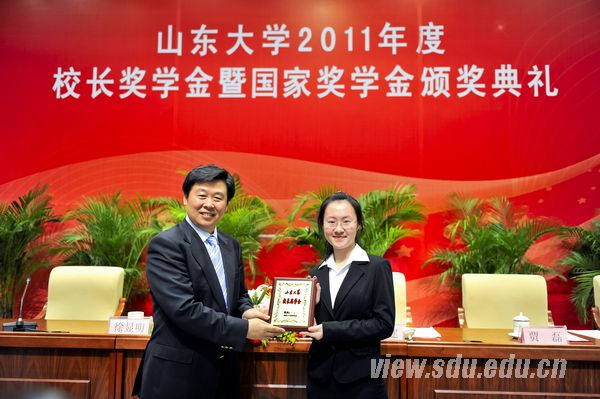 山东大学校长徐显明为2011年度校长奖学金获得者颁奖
