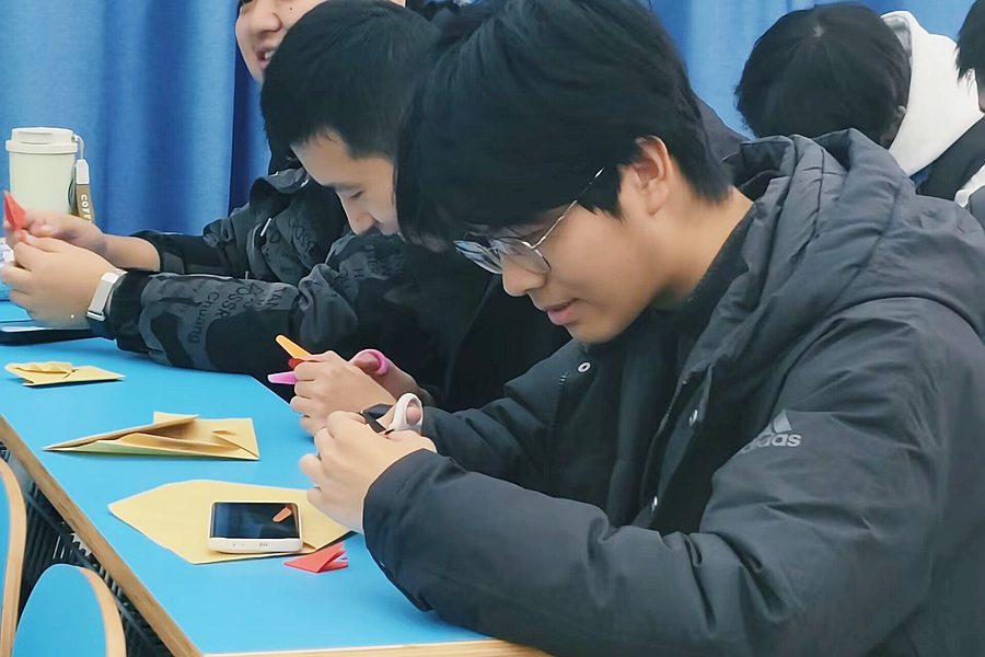 终于来到了动手实践环节,现场氛围专注而有序,同学们或潜心钻研技法,或轻声探讨纹样设计,或携带半成品向班委请教,教室里此起彼伏的剪刀裁剪声中,不时穿插着成功剪出完整窗花的欣喜赞叹。