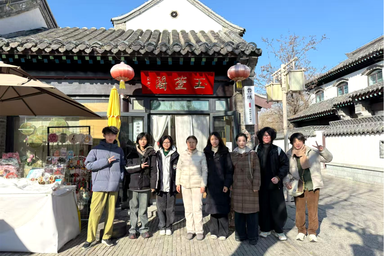走出玉萱阁,大明湖的波光与手中绣品的温润交织。这一次实践,鲁绣于我而言,不再是展柜里静默的文物,不再是课本上抽象的非遗符号,而是可感、可学、可传的鲜活文化。作为山东大学艺术学院的学子,我们肩负着“美育育人、文化传薪” 的使命,而鲁绣这样的非遗技艺,正是中华美育最深厚的土壤。