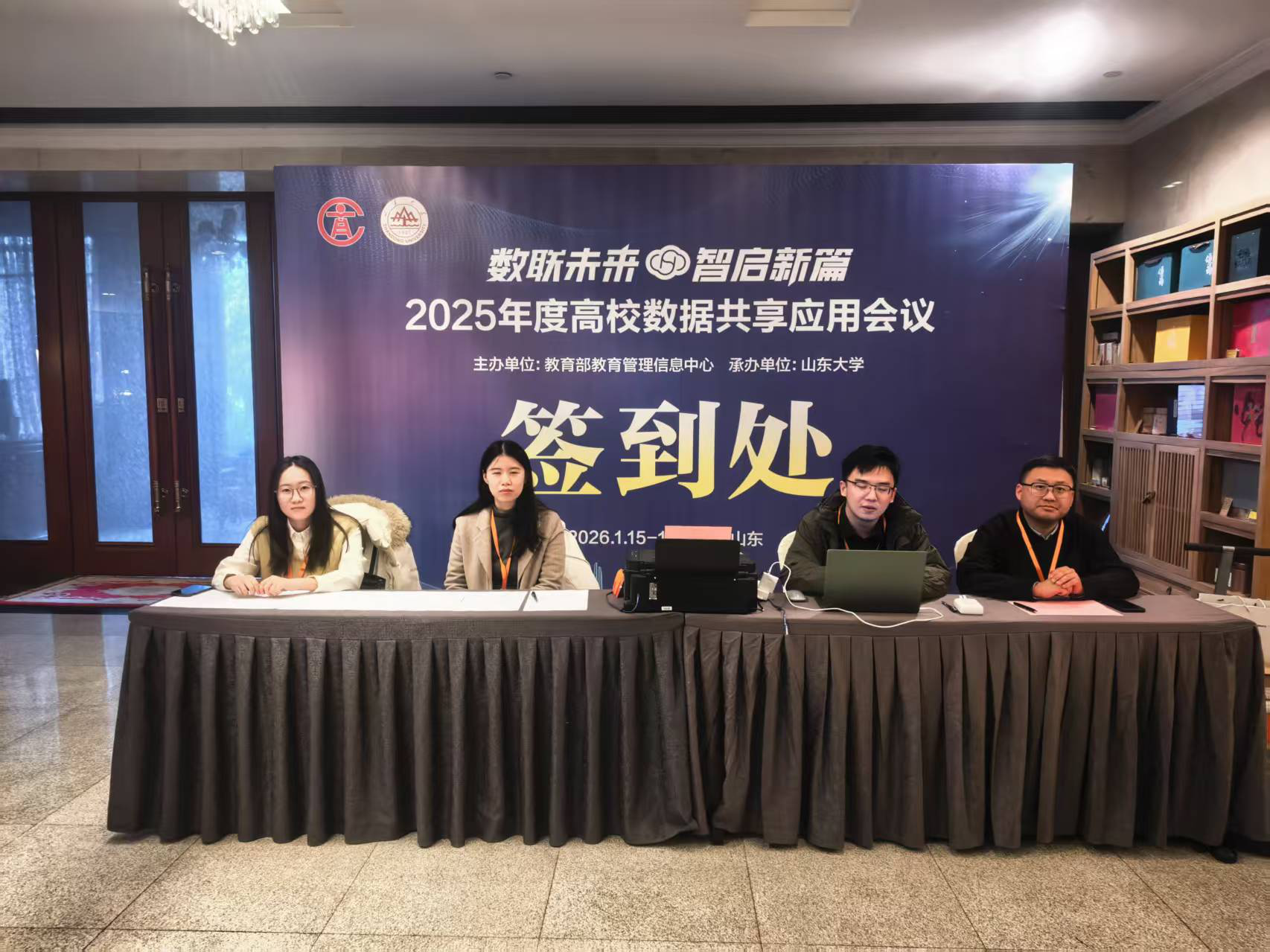 尽管经过了充分准备,会议报到日还是如一场“压力测试”。电话从早响到晚,接站调整、人员变化、议程同步、会议咨询……我仿佛成了信息中转站,消息不断汇集又分发。所幸,团队的力量在此时充分显现。刘金硕、刘新龙、娄成皓老师赶赴遥墙机场接站,一直忙碌到深夜十一点;蒋思尧、刘立洋老师在济南西站对临时改签情况迅速优化接站方案;李昂、公赛老师穿梭于济南站与济南东站之间,确保每一位参会老师顺利抵达;刘昱、王佳音等老师全程坚守签到岗位,何泽鲲老师则细致统筹住宿安排,稳稳托住后方。张宇菁、张妍老师负责校对及签到,同时投入到管理驾驶舱大屏的制作中;张洋老师联络教育部各司局核实会议各项细节,还有老师梳理会务细节,推动任务扎实落地。每个人都是哪里需要就往哪里补位,迅速顶上去,默默把每一环都衔接得稳妥、周全。大家的协同合作,让原本千头万绪的筹备工作,在动态中逐渐归于有序。
