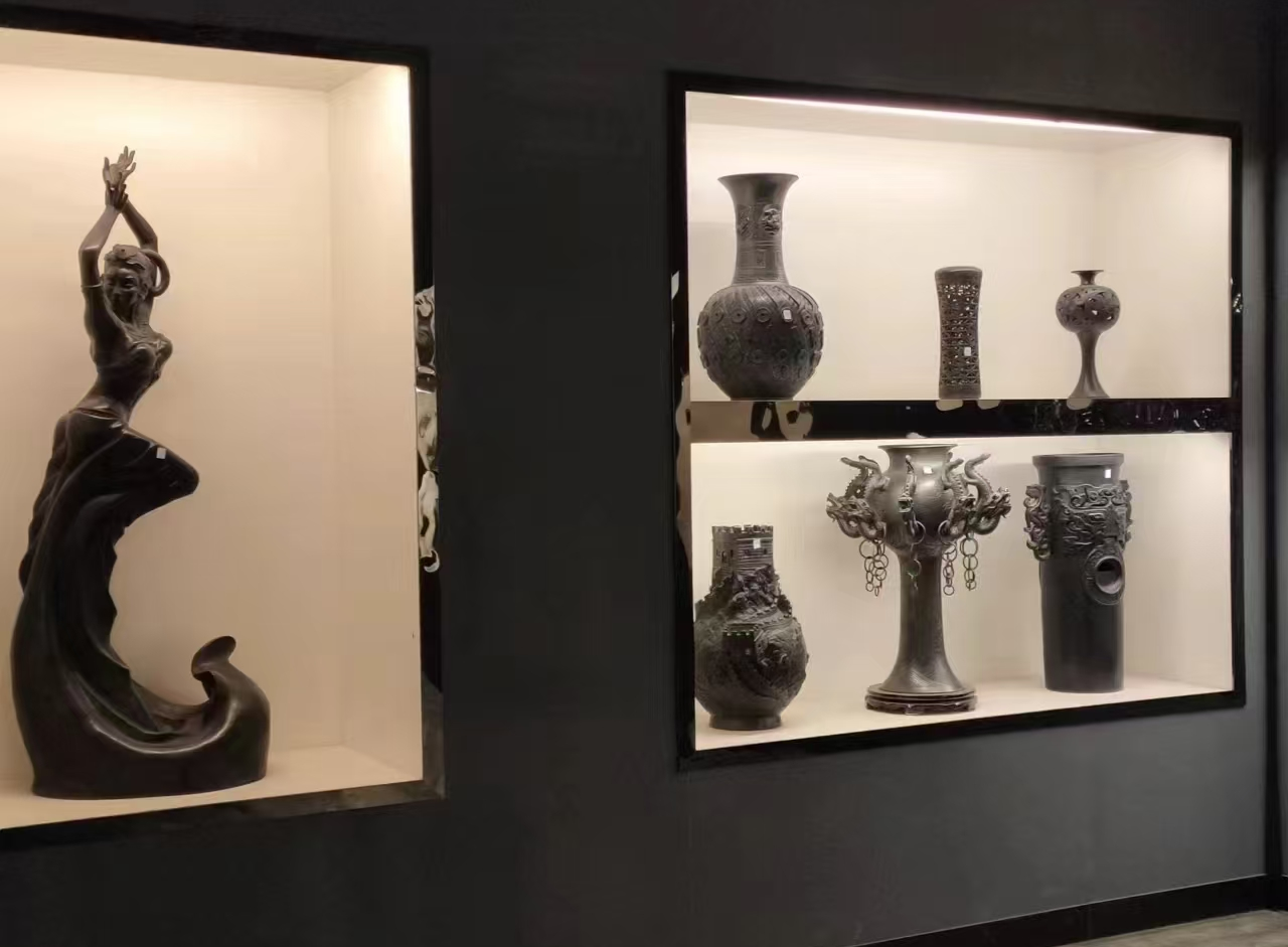 上午,我们重点调研了馆陶黑陶文创产业区,最让我印象深刻的是这里“传统技艺+创新表达”的融合发展模式。早就听闻馆陶黑陶有着“黑如漆、明如镜、薄如纸、硬如瓷”的独特工艺特色,今日一见,果然名不虚传。工匠们依托这份传统底蕴,打造出镂空、浮雕、线刻等六大系列上千个品种的产品,既保留了黑陶古拙厚重的传统质感,又巧妙融入了邯郸成语典故、古赵文化等本土元素,让古老的黑陶有了更贴近当代人的表达。