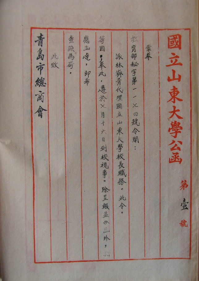 1936年7月9日,国民政府教育部任命林济青代理国立山东大学校长