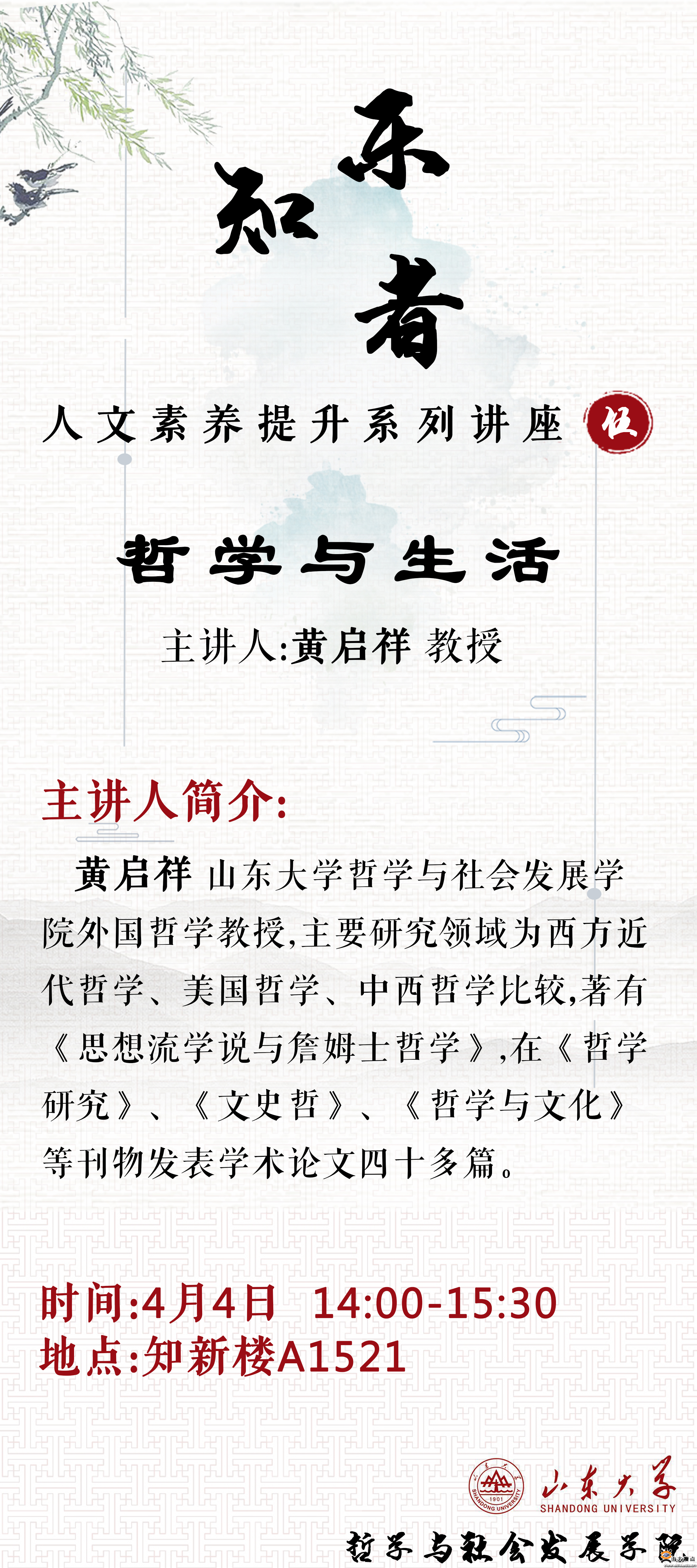 黄启祥,山东大学哲学与社会发展学院外国哲学教授,主要研究领域为西方近代哲学、美国哲学、中西哲学比较,著有《思想流学说与詹姆士哲学》,在《哲学研究》、《文史哲》、《哲学与文化》等刊物发表学术论文四十多篇。