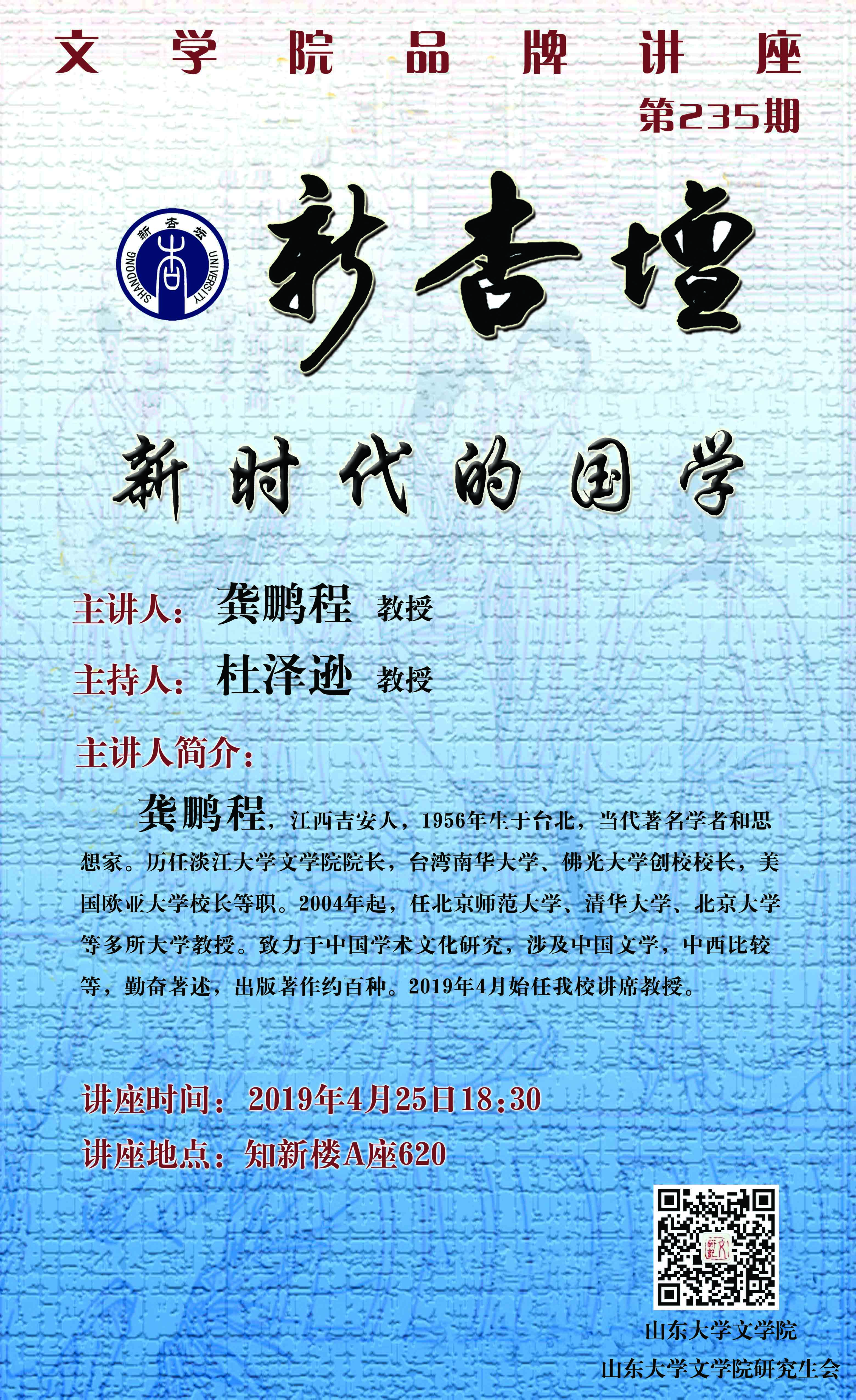 龚鹏程,当代著名学者和思想家。历任淡江大学文学院院长,台湾南华大学、佛光大学创校校长,美国欧亚大学校长等职。2004年起,任北京师范大学、清华大学、北京大学等多所大学教授。致力于中国学术文化研究,涉及中国文学、中西比较等,勤奋著述,出版著作约百种。2019年4月始任我校讲席教授。