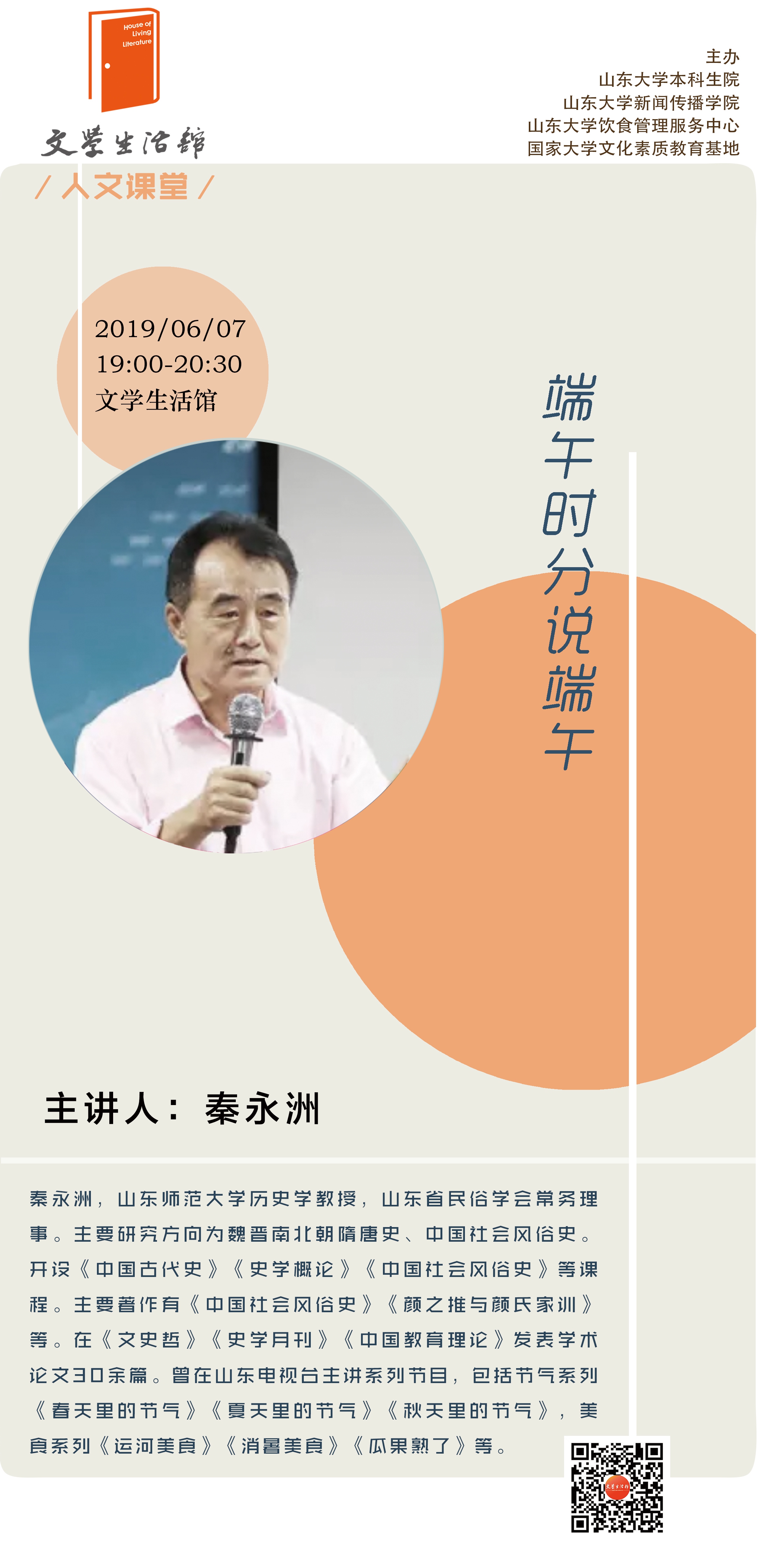 节日是远古的历史回音,记载着先民蹒跚的足印,反映了远古先民对大自然奥秘的探索,对险恶生存环境的抗争,对远古新生活的开拓。同时,节日又是保存、传承传统技艺的载体,其中端午节是最具人文特征和纪念意义的传统节日,蕴含着忠孝的品格和鲜明的爱国主义精神。龙舟竞渡与伍子胥、曹娥、屈原有怎样的渊源?师符、五色丝、艾草、菖蒲酒又有何寓意?本期讲座将从端午节的起源、风俗活动以及文化蕴涵等角度,对以上问题进行细致讨论。