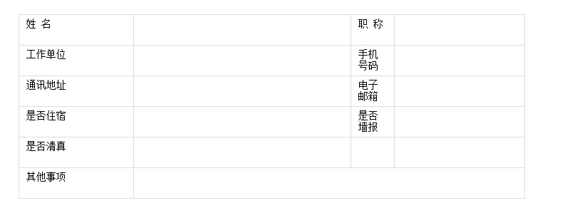 “化学、环境、能源和健康”全国博士后学术论坛报名回执表