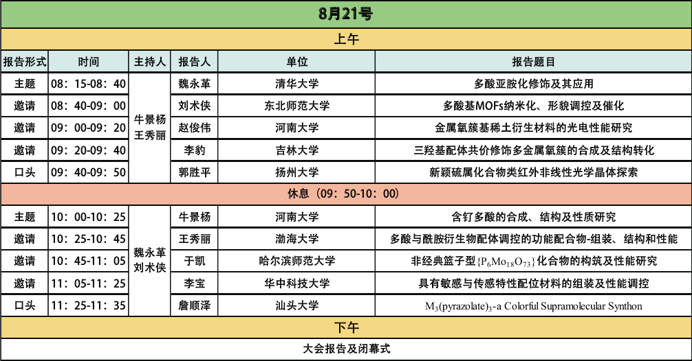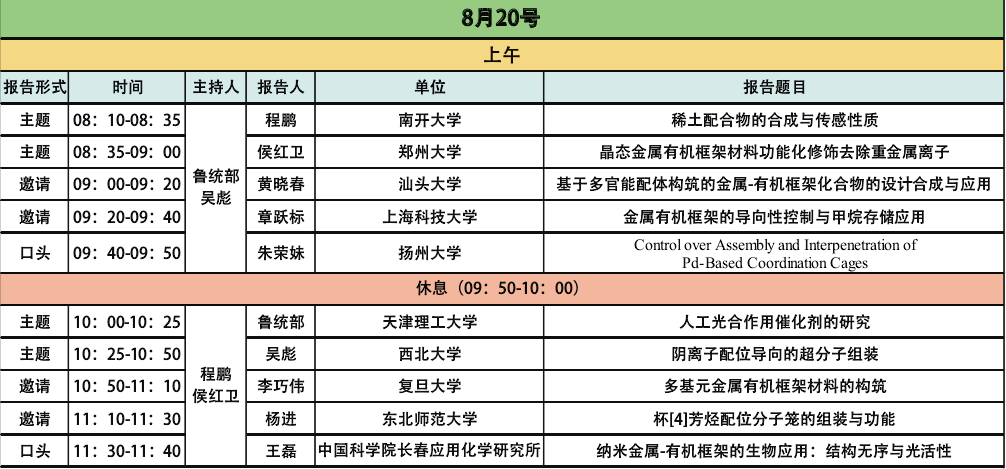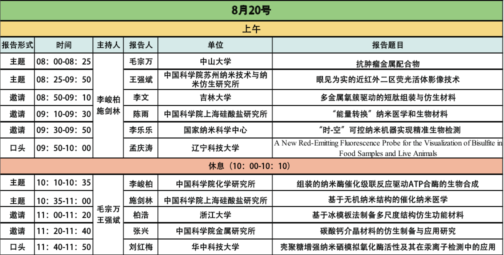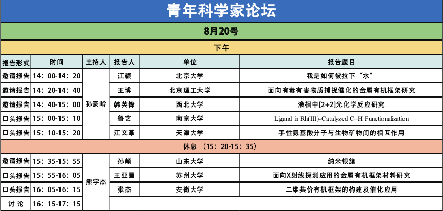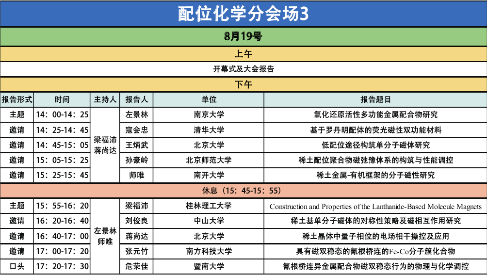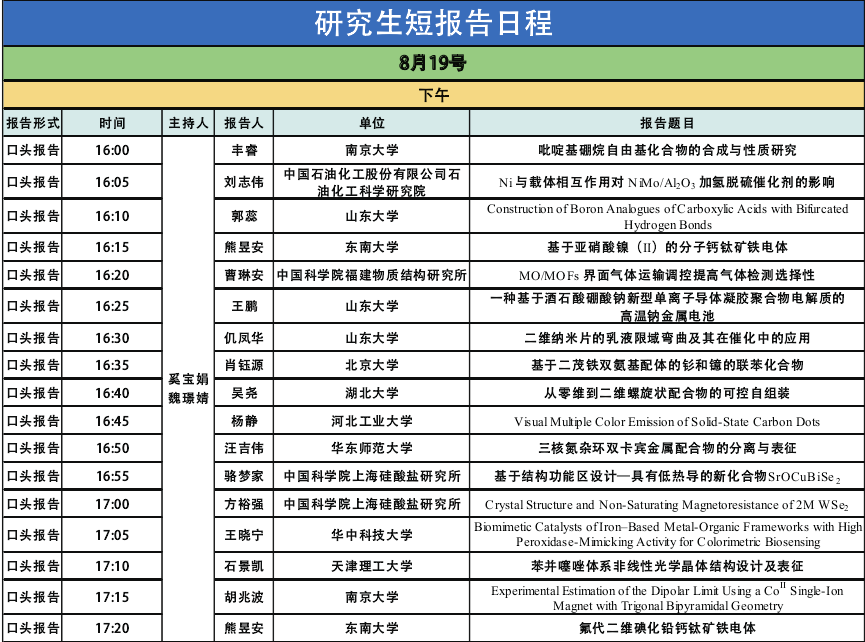 本次会议的墙报集中讲解时间为8月20日17:00—18:30,地点:知新楼B座楼前墙报区域。