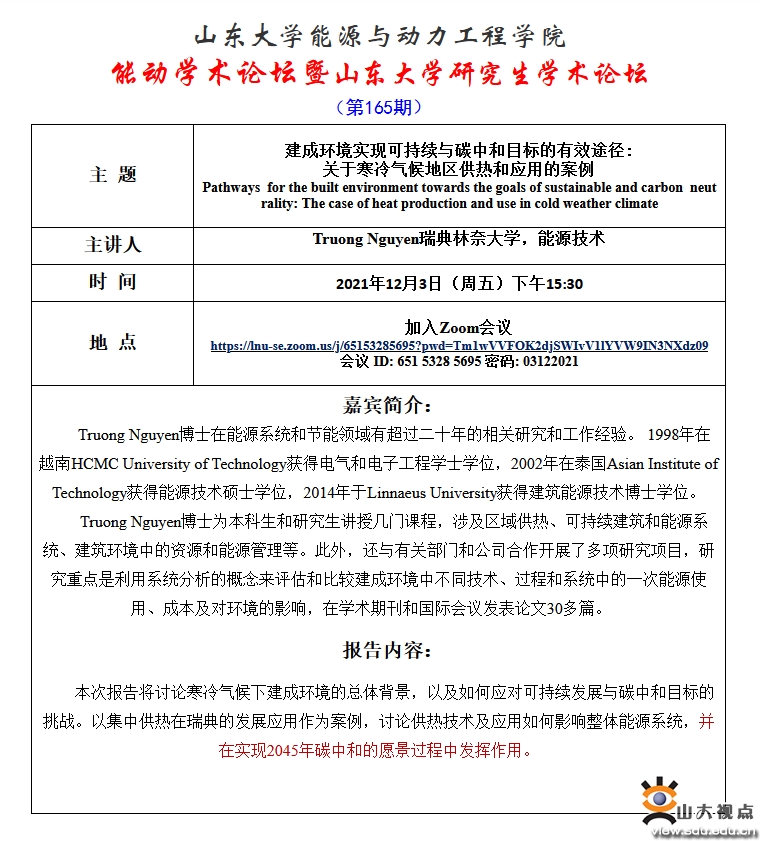 能动学术论坛第165期暨山东大学研究生学术论坛