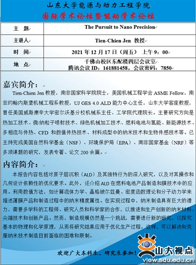 发布:山东大学融媒体中心 日期:2021年12月15日 点击数: