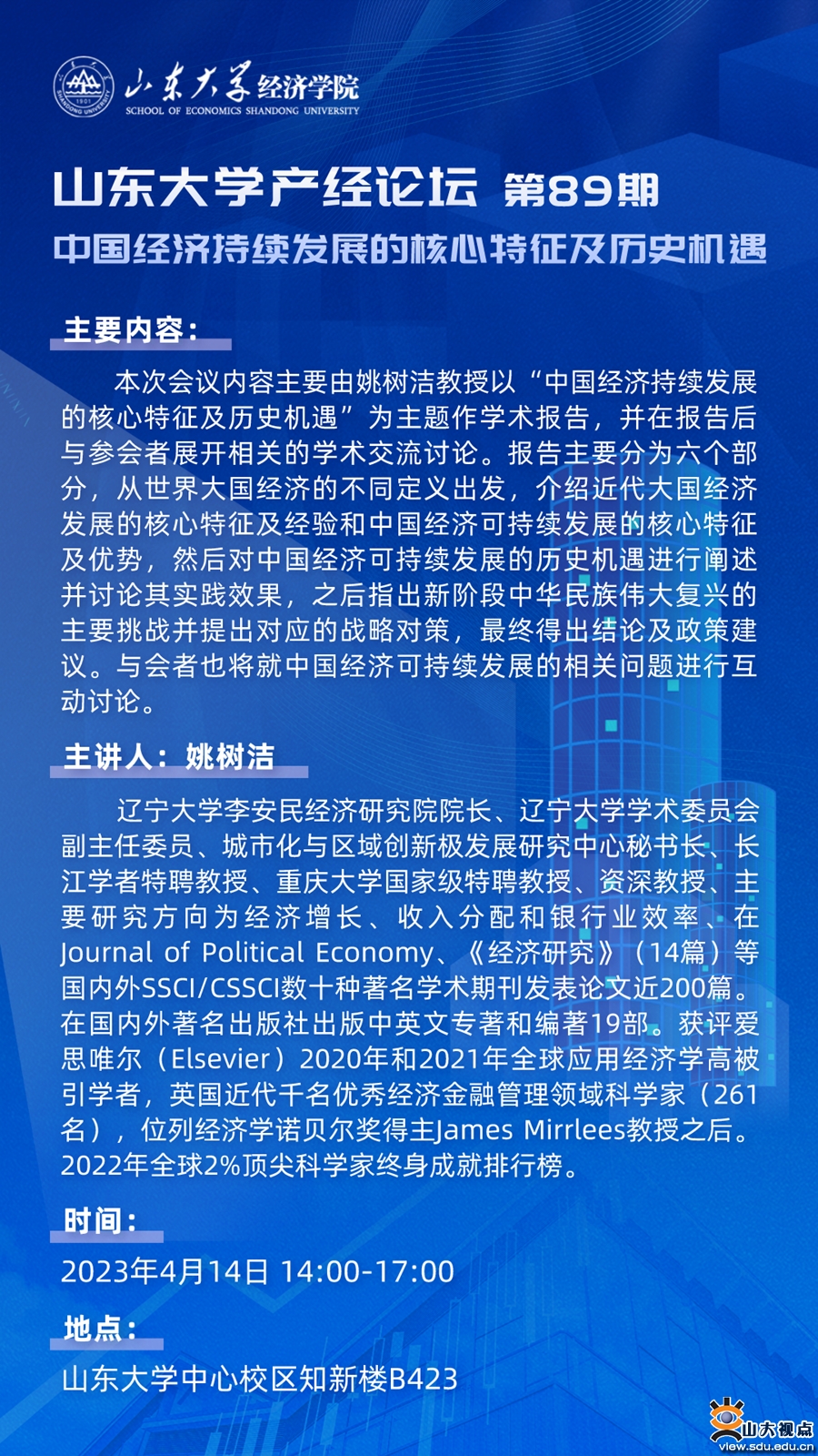 山东大学产经论坛第89期:中国经济持续发展的核心特征及历史机遇