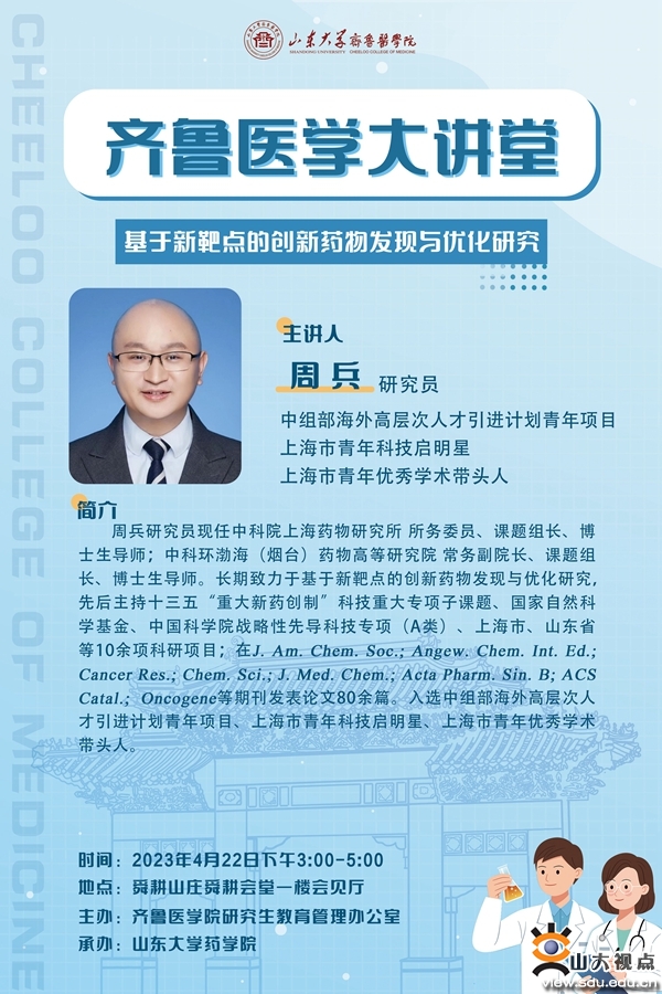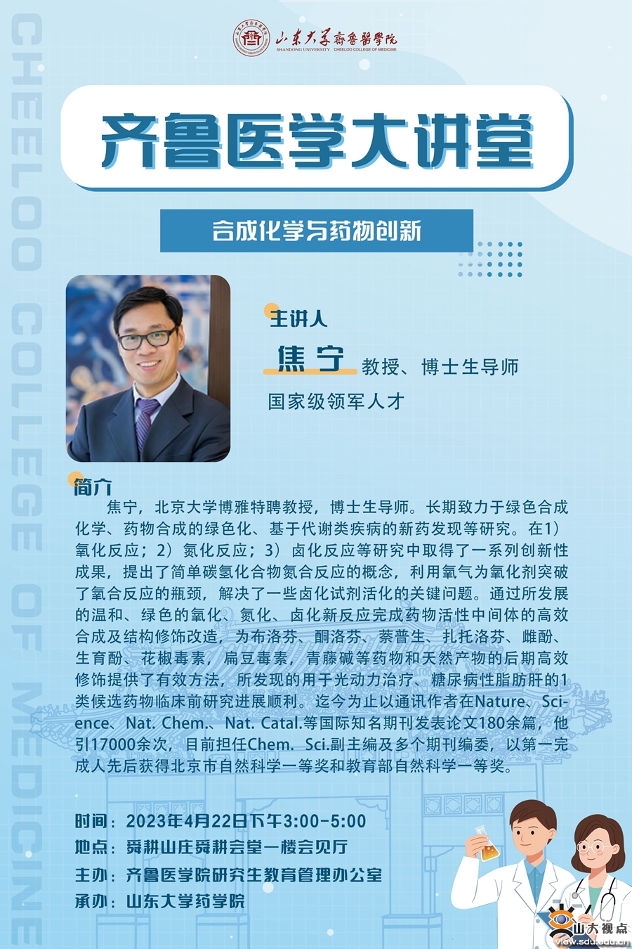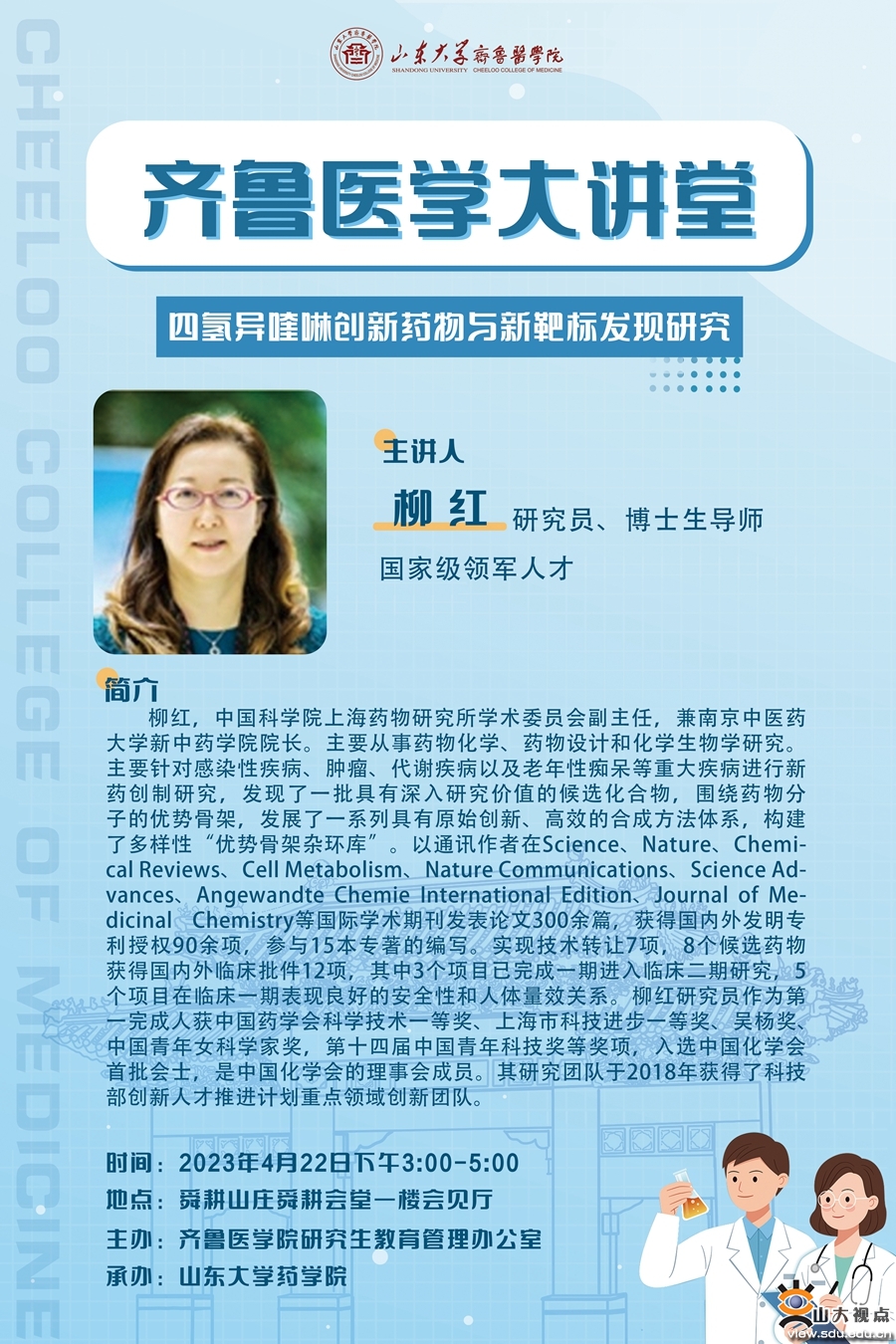 齐鲁医学大讲堂:四氢异喹啉创新药物与新靶标发现研究、合成化学与药物创新、基于新靶点的创新药物发现与优化研究