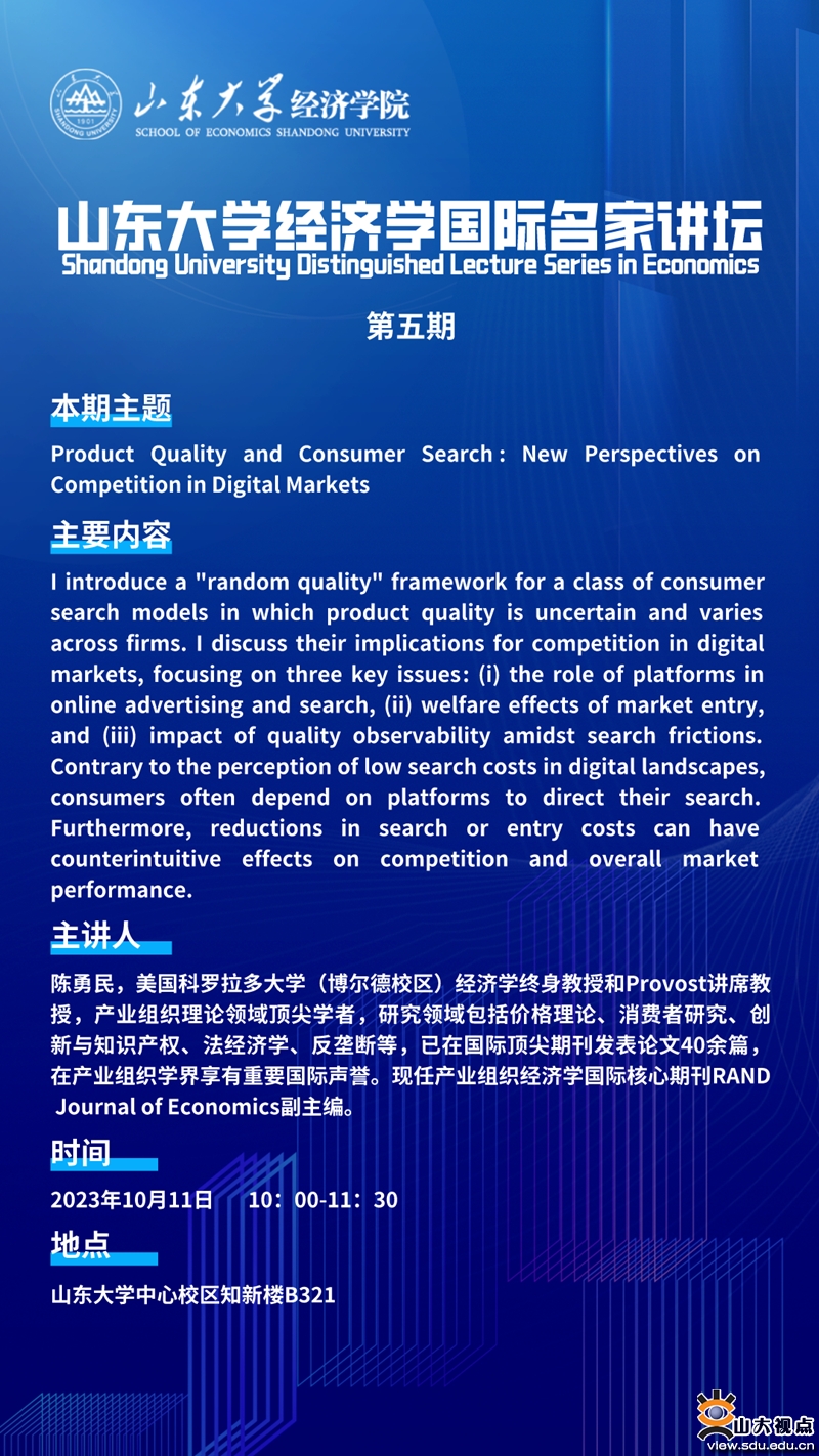 山东大学经济学国际名家讲坛第五期